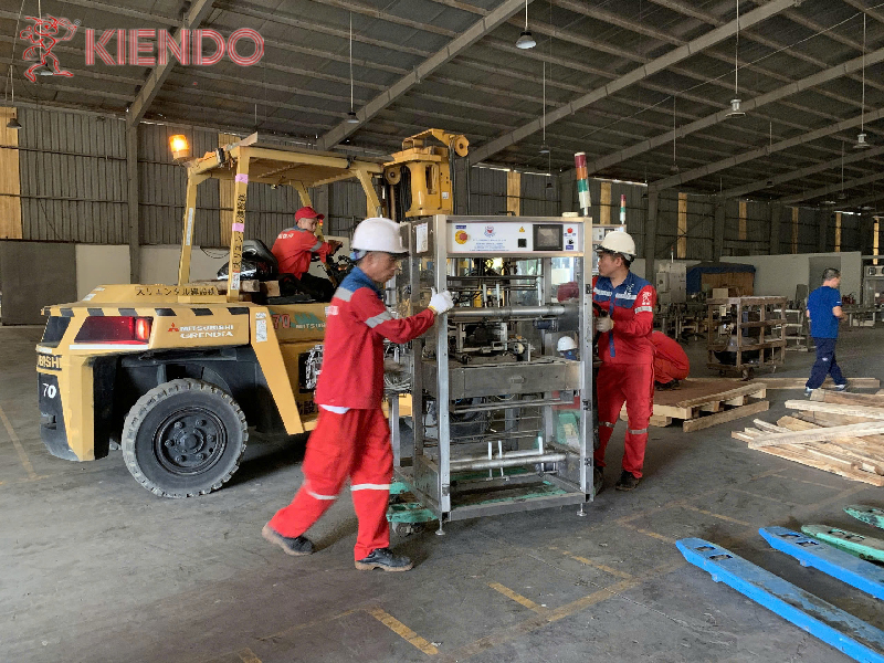 - Sử dụng xe nâng hoặc thiết bị thủy lực để đặt máy móc vào đúng vị trí đã xác định trước.